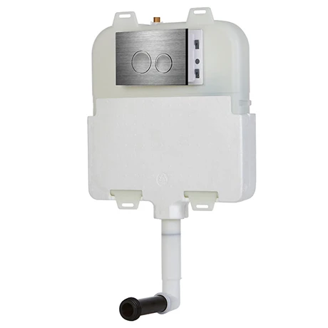 The sleek and streamlined Arezzo compact water saving pneumatic dual flush concealed cistern with round button brushed gunmetal grey flush plate, ideal for bathroom furniture and in wall installations. It has an insulated durable design, reducing the need for maintenance and is economical with water, providing a 3 or 6 Litre flush. It comes with cable operated flush plate for simple installation. For use with back to wall pans.Â