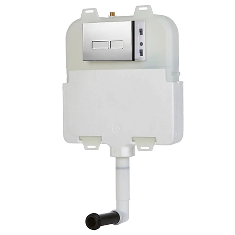 The sleek and streamlined Arezzo compact water saving pneumatic dual flush concealed cistern with square button polished chrome flush plate, ideal for bathroom furniture and in wall installations. It has an insulated durable design, reducing the need for maintenance and is economical with water, providing a 3 or 6 Litre flush. It comes with cable operated flush plate for simple installation. For use with back to wall pans.Â