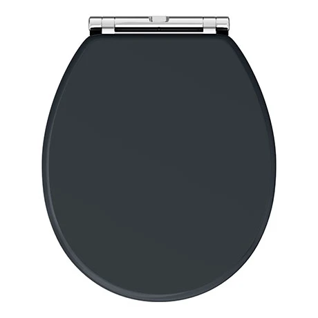 A high-quality traditional round satin graphite toilet seat with brushed chrome hinges. The Chatsworth traditional graphite toilet seat with it’s classic styling has been designed to match the Chatsworth range of bathroom furniture. Features quick release hinges for easy cleaning.