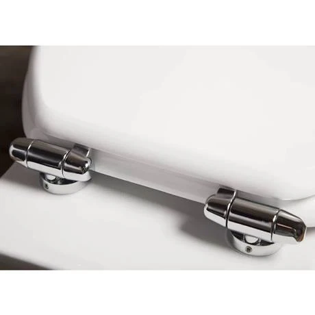 Choose the Chatsworth White Soft Close Toilet Seat to bring a clean, fuss free appeal to your bathroom. Made from satin white MDF with brushed chrome hinges, this 370mm wide classic style toilet seat combines a traditional design with practical touches. The soft close mechanism on both the seat and the lid to prevent any sudden slams.