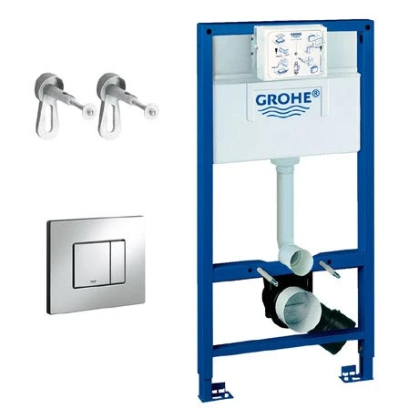 The Rapid SL 3 in 1 Set Support Frame for Wall Hung WC gives you the freedom to design your ultimate bathroom by providing a secure and quick method of installing WCs. Each frame comes pre-assembled with sanitary ware fixings and is subject to stringent testing – Grohe WC frames are tested to hold 400kg.