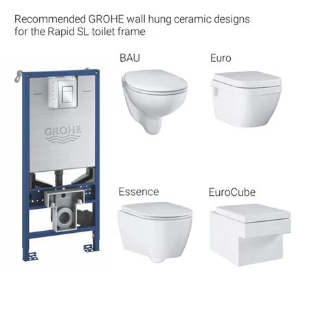 The sleek and robust Rapid SLX 1.13m 3-in-1 Set Support Frame for Wall Hung WC. It comes with a Rapid SLX element, wall-brackets for on-the-wall-installation and a stylish Skate Cosmopolitan S flush plate, which has a gleaming chrome finish and a super slim shape, that simply plugs onto the drain valves using our EasyConnect system. The Plug & Play design includes an electric socket and water connection so you can easily add a shower toilet while GROHE Whisper technology helps stop sound travelling through walls when the flush is used.