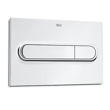 A stylish flush plate for use with Roca dual flush concealed cisterns. Features a modern and sleek design with polished chrome finish. Suitable for use in commercial installations.