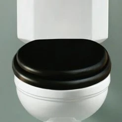 A luxury hand-crafted solid ebony black wooden toilet seat with quality heavy-weight bar hinges from Silverdale. Available with either chrome, incalux or polished nickel hinges.