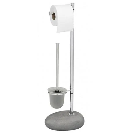 Pebble Stone Grey Standing WC Set from Wenko, made of high quality polyresin. The smooth natural stone look characterize the Pebble Rock bathroom range. The freestanding WC set consists of a paper roll and frosted glass toilet brush holder.