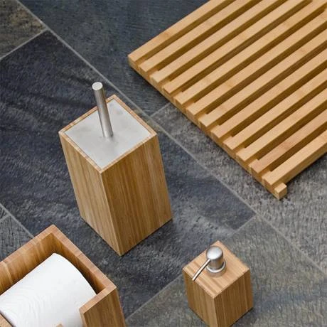 This stylish wooden square design toilet brush and holder is manufactured from sustainably harvested bamboo and has a detachable inner container for easy cleaning. It also features a matt stainless steel brush handle while the holder is finished with a matt water resistant lacquer. The silicone feet stop it from slipping and prevents your floor from being scratched.
